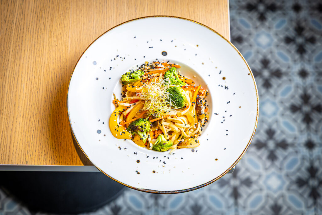 Nuudlid, porgand, brokoli, paprika, šampinjonid Lisandid: krevetid - (+4.-) kanafilee - (+2.-)